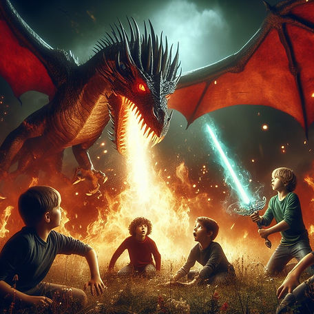 The left half of Liam’s hair was singed by the dragon flame, but he was not hurt. “I heard the tree asking for protection so I ran to it. Sorry. I nearly caused a big problem,” Liam sheepishly said to Aiden. Brian collapsed with exhaustion. Liam and Lucas hugged him and Aiden. All were crying with joyous satisfaction that they had overcome their fears. Aiden's courage and selflessness had helped them triumph over a fearsome enemy, and they could rest for the night.